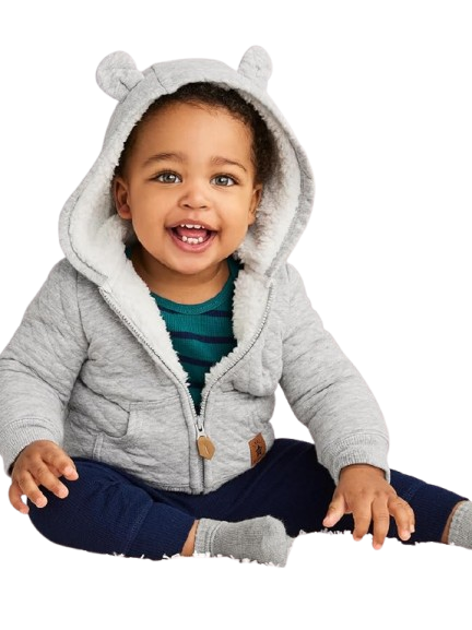 complete with cute bear ears. Adds a playful touch that makes this jacket a standout piece in baby’s wardrobe.