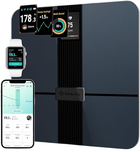 Etekcity Smart Scale for Body Weight Fat, FSA HSA Eligible, Digital Bathroom Weighing Machine for Accurate BMI Muscle Mass Composition, Home Use Apple Health Compatible Fitness Equipment.