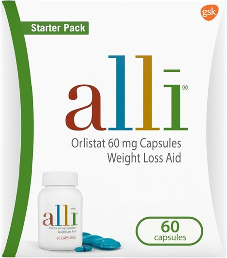 Alli Diet Weight Loss Supplement Pills, Orlistat 60mg Capsules Starter Pack, Non prescription weight loss aid, 60 count(Pack of 1).