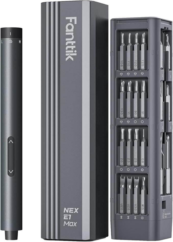 Fanttik E1 Max 3.7V Electric Screwdriver, Mini Precision Screwdriver Set, 50 Magnetic Bits, Magnetic Storage, 5/32‘’Hex, Repair Tool Kit for Electronics Phone Camera Laptop Watch (Grey).