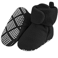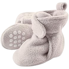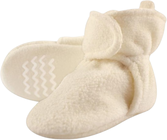 Hudson Baby fleece booties are comfortable, cozy baby booties made with fleece material that will keep your little one’s feet warm and comfortable. Our booties wrap around your baby’s foot and fasten in the front with a velcro closure, so they are easy to put on, fasten and stay on. Our fleece booties feature non-skid soles to prevent your baby from slipping and falling when they start to walk and run.